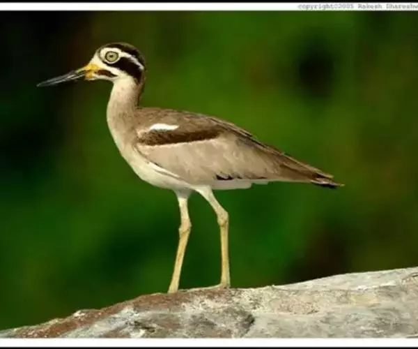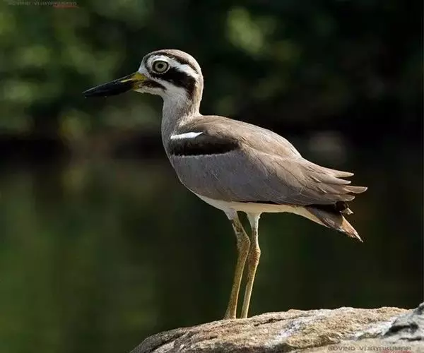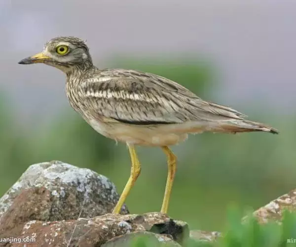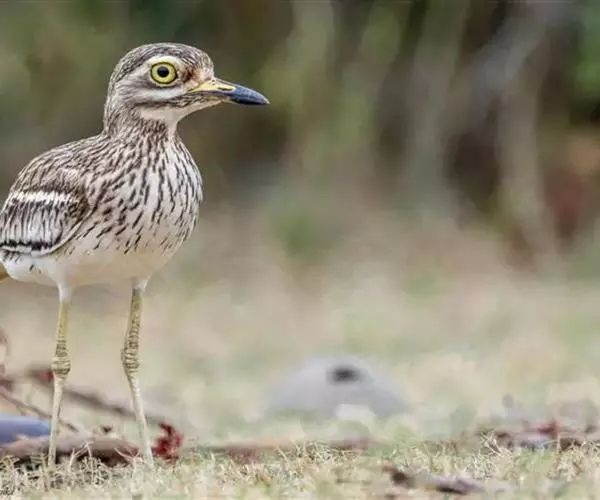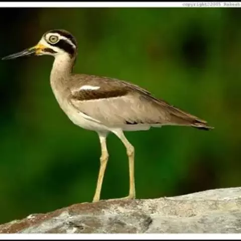 石鸻虹膜黄色,眼非常大,嘴黑色,基部黄色,脚黄色或绿灰色。