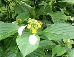 粉纸扇,茜草科玉叶金花属植物,半常绿灌木,株高1~3 m。叶对生,长椭圆形,顶端浙尖,基部楔形,全缘。…