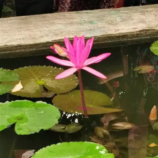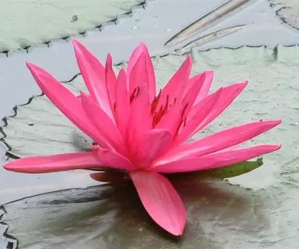 红花睡莲,多年生浮水植物。叶浮于水面,卵形,革质,表面绿色,背面紫红色,幼叶红色,花昼开夜合,浮于…