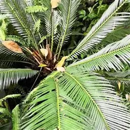 泽米苏铁科苏铁属。植物丛生,茎撑球状,叶为中型羽状复叶,簇生于茎顶,小叶为卵状椭圆形。雄雌异株,雄…