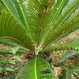 篦齿苏铁:树干圆柱形,高达3米。羽状叶长1.2-1.5米,叶轴横切面圆形或三角状圆形,柄两侧有疏刺,…