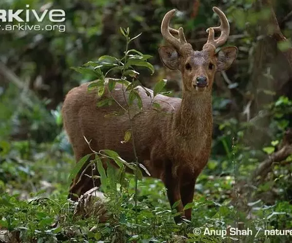 豚鹿(学名:Axis porcinus)也叫芦蒿鹿,体形中等,但较为粗壮,四肢较短,显得矮胖,臀部钝圆且较低,姿态象猪,因而得名。雄性豚鹿长着细长的三叉角,全身淡褐色,生活在沿河两岸的湿地。昼伏夜出,既善穿越灌草丛,也能跳跃障碍。多单独活动,在发情交配期临时集成小群。喜欢吃烧荒后再生的嫩草,也吃芦苇叶和其他水生的植物,偶尔偷食大豆、玉米苗和瓜类等作物。 野生豚鹿分布于孟加拉国、不丹、柬埔寨、印度、尼泊尔和巴基斯坦。