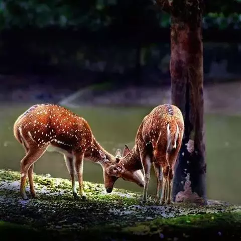 坡鹿是偶蹄目鹿科鹿属动物,体长1.6米左右,体重60~100千克。体形狭长,颈部和四肢也较为细长,…