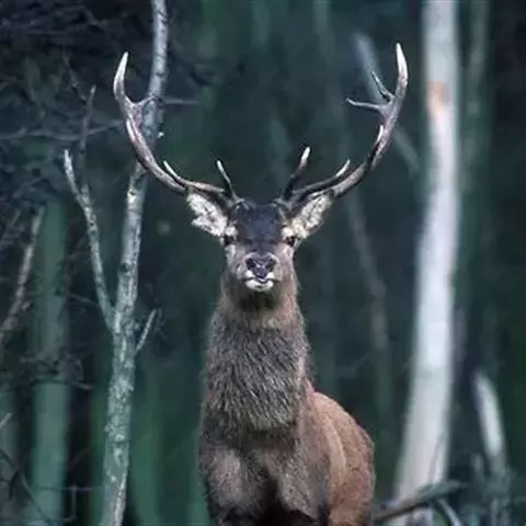 白唇鹿:体形高大,体长约2米,通体被毛十分厚密,毛粗硬且无绒毛,毛色在冬夏有差别。鼻端两侧、下唇记…