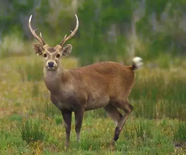 水鹿是偶蹄目鹿科鹿属哺乳动物,又称黑鹿、春鹿、山牛。身体高大粗壮。头骨细长,鼻骨、额骨发达,…