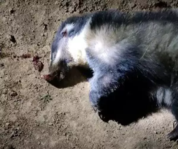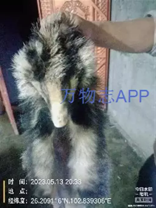 猪獾(学名:Arctonyx collaris),别称沙獾,山獾,是鼬科、猪獾属的哺乳动物。猪獾体型粗壮,吻鼻部裸露突出似猪拱嘴,四肢粗短,头大颈粗,耳小眼也小,尾短,其整个身体呈现黑白两色混杂,背毛黑褐色,胸、腹部两侧颜色同背色,中间为黑褐色。四肢色同腹色。尾毛长,白色。