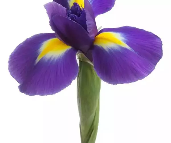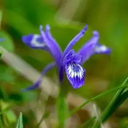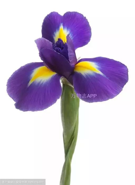 鸢尾为鸢尾科鸢尾属多年生草本植物,地下部分鳞茎长卵圆形,被褐色皮膜,叶线形,具深纵沟。茎粗壮直立,着花1~2朵,有梗。花被筒部不显或近无;垂瓣圆形,基部细缢,爪部甚长,旗瓣长椭圆形,与垂瓣等长。茎约7cm.。花色有淡青蓝色、蓝紫色、白色、黄色等。