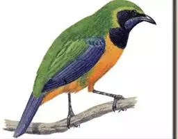 传说,极乐鸟是天国神鸟,以天露花蜜为食,飞舞时会发出一阵阵迷人的乐声,它们追逐自由和幸福,一生只落地一次,那便是它们生命的终点和故乡——南太平洋新几内亚岛。巴布亚新几内亚人不仅深信这一传说,且引以为豪,将这种色彩鲜艳、带有华丽尾羽的珍奇小鸟作为吉祥物,绘在自己的国旗、国徽、民航客机上,象征着自由与幸福。