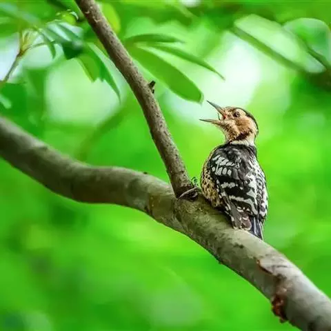 极乐鸟的长相非常漂亮,可叫声却不太美妙。它们的叫声非常单调,有的像风啸声,有的像口哨声。不过,极乐鸟能模仿多种声音,有木柴燃烧爆裂时发出的“哔啪”声,有猫的“咪咪”叫声、牛的“嗥嗥”叫声、冲锋号声、小号声、鼓掌声、咝咝声、敲门声,甚至射击声。