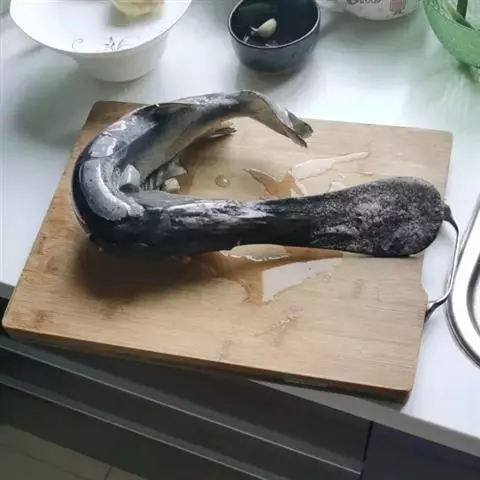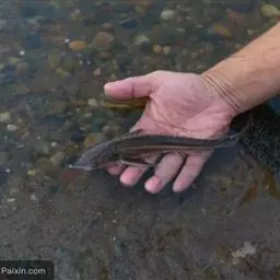 看其外观,鱼嘴扁平酷似鸭嘴,却比鸭嘴长几倍,50多厘米长的身子,又长又扁的嘴巴已经占了一大半。周身光滑,深灰色的鱼身,没有鳞片 。
