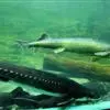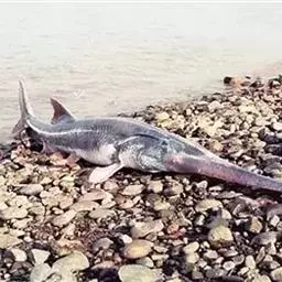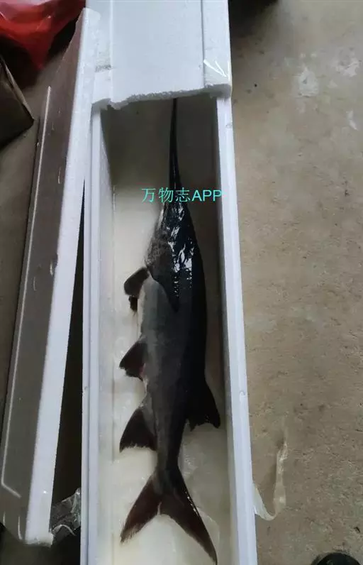 鸭嘴鱼学名:美国匙吻鲟(又名鸭嘴鲟),英文名:Polyodonspathala,匙吻鲟,学名“美国匙吻鲟”原产美国密西西比河流域,是一种大型淡水经济鱼类,属鲟形目匙吻白鲟科。是从3亿年之前(即恐龙时期)就在地球上生活,并存留下来的一种珍稀鲟鱼类,是世界上匙吻鲟科中仅有的两个品种之一。它与中华鲟以及长江水域中的白鲟同属鲟形目白鲟科。