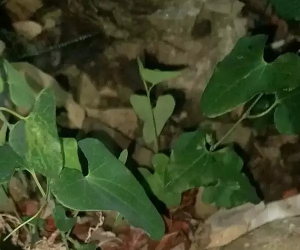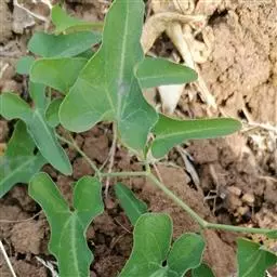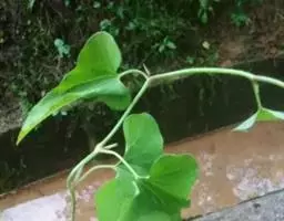 草质藤本。根圆柱形。茎柔弱,无毛。叶互生;叶柄长l-2cm,柔弱;叶片卵状三角形、长圆状卵形或戟形,长3-6cm,基部宽1.5-3.5cm,先端钝圆或短渐尖,基部心形,两侧裂片圆形,下垂或稍扩展;基出脉5-7条,各级叶脉在两面均明显。