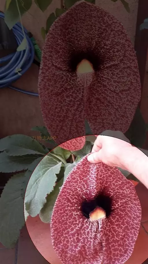 巨花马兜铃花朵的主要部分只有一片,看起来好像是一个巨大的、带有纹理的兜状物,而不像普通的花朵那样拥…