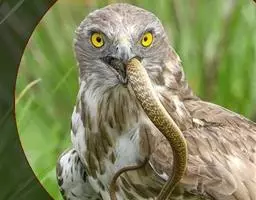 觅食方式有时是静静地站在悬崖岩石上或空旷地区的高大树上,当有猎物出现时,突然冲下扑向猎物;有时则盘旋在高空觅找猎物;有时则掠地而过,在低空飞行中捕食;有时则快速而敏捷的扇动两翅,跟踪猎物飞行追捕。飞行时两翅煽动缓慢,显得相当从容不迫和轻而易举,同时它也能高速地在浓密的森林中飞行和追捕猎物,飞行技巧相当高超,有时也在森林上空盘旋和滑翔。不善鸣叫。主要以鼠类、蛇类、雉鸡、蛙、蜥蜴、小鸟和鸟卵以及大的昆虫等动物性食物为食。
