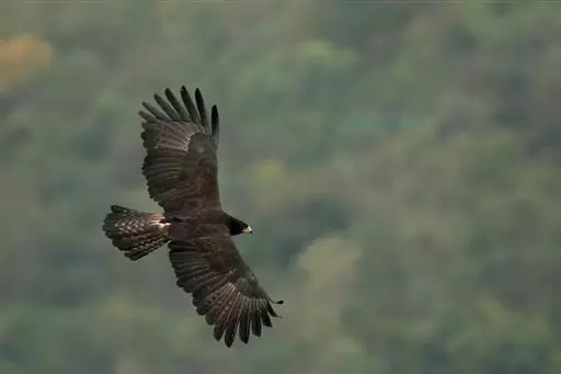 林雕(学名:Ictinaetus malayensis):为隼形目鹰科的鸟类,是一种中型猛禽,体长67-81厘米,翼展164-178厘米,体重1000-1600克。通体黑褐色,眼下及眼先具白斑;头、翼及尾色较深;尾较长,尾上覆羽淡褐具白横斑;尾羽有不明显的灰褐色横斑。虹膜黄色,脚黄色;爪长且微具钩,与其他雕类有别。中国国家Ⅱ级重点保护动物。
