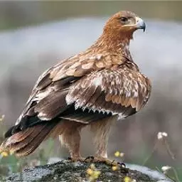 白肩雕:又名御雕,是大型猛禽。体长73-84厘米。体羽黑褐色,头和颈较淡,肩部有明显的白斑,在黑褐…