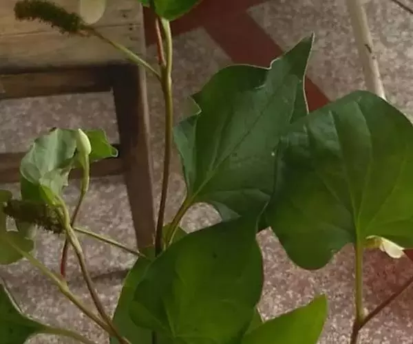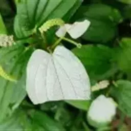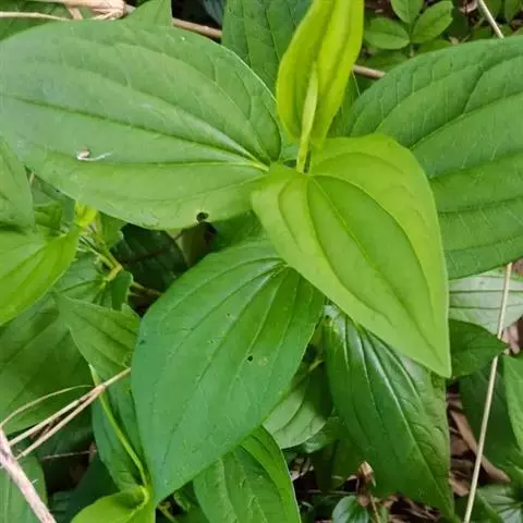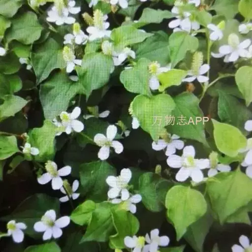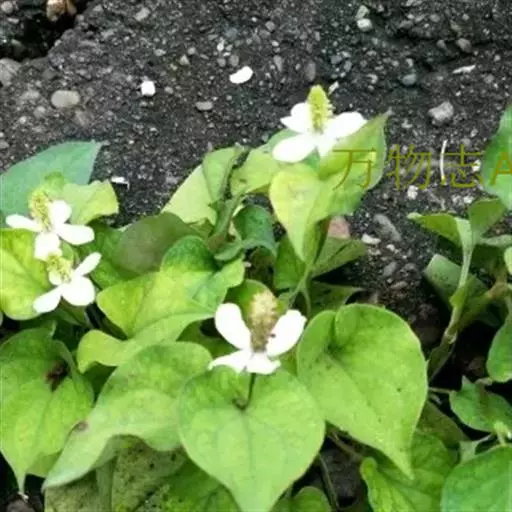 蕺菜,多年生草本,高15-50cm,有腥臭气。茎下部伏地,生根,上部直立。叶互生,心形或阔卵形,长3-8cm,宽4-6cm,先端渐尖,全缘,有细腺点,脉上被柔毛,下面紫红色;叶柄长3-5cm;托叶条形,下半部与叶柄合生成鞘状。穗状花序生于茎顶,与叶对生,基部有白色花瓣状苞片4枚;花小,无花被,有一线状小苞;雄蕊3,花丝下部与子房合生;心皮3,下部合生。蒴果卵圆形,顶端开裂。花期5-8月,果期7-10月。生于山地、沟边、塘边、川埂或林下湿地。