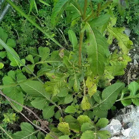基生叶稀疏丛生,叶片琴状羽裂,长15-25厘米,宽5-20厘米,顶端裂片大,卵形,长达15厘米,宽9厘米,两侧裂片3-4对,侧裂片一般为倒卵形或匙形,叶面被白色刺毛或乳头状刺毛,背面沿脉密被刺毛;叶柄长可达25厘米;茎生叶在茎之中下部为羽状深裂,中裂片披针形,长11厘米,宽5厘米,先端渐尖,边缘具疏粗锯齿,侧裂片2-4对,披针形或长圆形,基生叶和下部的茎生叶具长柄,向上叶柄渐短,上部叶披针形,不裂或基部3裂。