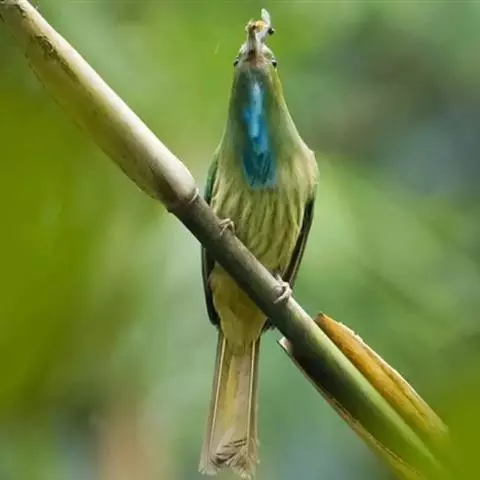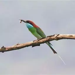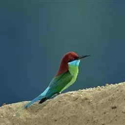 蓝喉蜂虎中型鸟类,体长26~28厘米。头顶至上背栗红色或巧克力色,过眼线黑色,腰和尾蓝色,翼蓝绿色,…