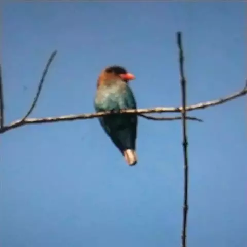 棕胸佛法僧是佛法僧科佛法僧属中型鸟类,体长32~35厘米。黑色的嘴细而下弯。头顶暗蓝色,…