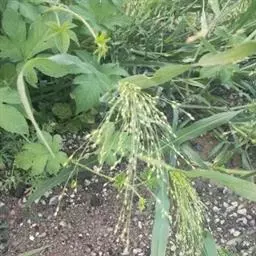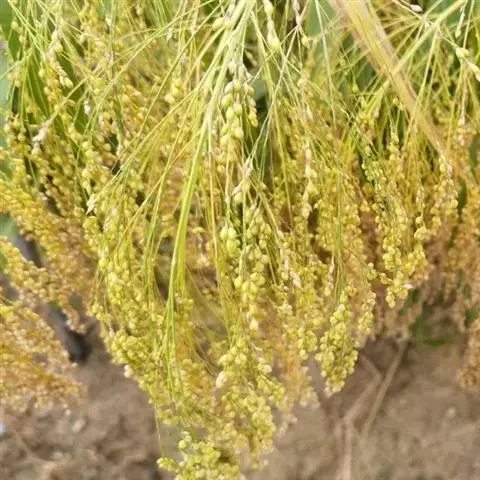 稷(学名:Panicum miliaceum L.)是禾本科,黍属一年生栽培草本植物。秆粗壮,直立,高可达120厘米,节密被髭毛,叶鞘松弛,叶舌膜质,叶片线形或线状披针形,顶端渐尖,基部近圆形,边缘常粗糙。圆锥花序开展或较紧密,成熟时下垂,小穗卵状椭圆形,颖纸质,无毛,第一颖正三角形,第二颖与小穗等长,第一外稃形似第二颖,第二外稃背部圆形,平滑,鳞被较发育,种脐点状,黑色。7-10月开花结果。