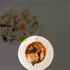 2、小锅中加入a)的调料、姜片和水(约1—2倍),煮开后加入葱花稍煮,熄火。