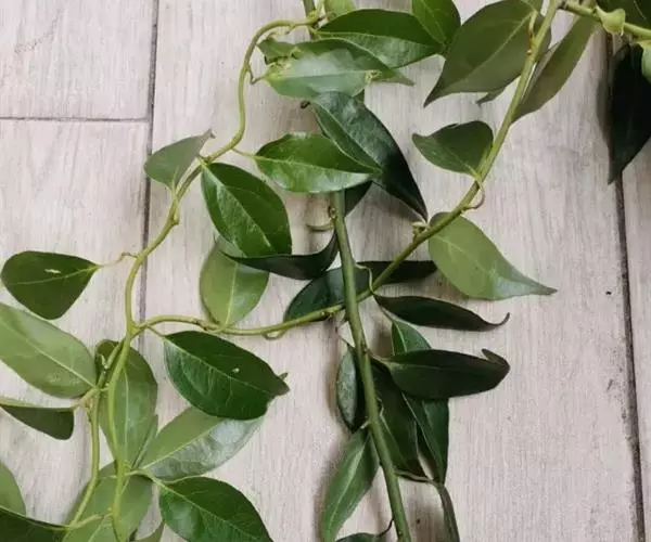 落叶攀援木质藤本;嫩枝绿色,被细柔毛,老枝紫褐色,具白蜡层,常留有木质化成单刺状或双刺状的叶柄基部。芽鳞阔卵形,具缘毛。叶近纸质,卵状椭圆形、卵形或阔卵形,长3.5-9厘米,宽2-4.5厘米,叶面深绿色,中脉有稀疏毛,叶背带白色,脉上被稀疏柔毛,侧脉每边3-5条;叶柄长2-5毫米,被柔毛。