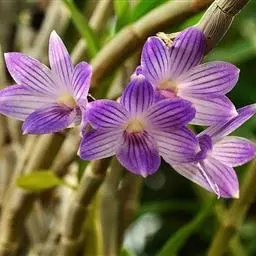 美花石斛是兰科石斛属多年生草本。茎柔弱,斜立或下垂,呈细圆柱形,有时分枝;叶互生于茎上,…