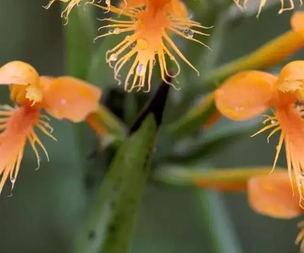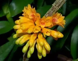 长苏石斛(学名:Dendrobium brymerianum Rchb.f.):茎直立或斜举,不分枝,具数个节。叶薄革质,常3-5枚互生于茎的上部,狭长圆形。总状花序侧生于去年生无叶的茎上端,近直立,具1-2朵花;花质地稍厚,金黄色,开展;花瓣长圆形,长2.5厘米,宽7毫米,先端钝,具7条脉,全缘;唇瓣卵状三角形,基部具短爪,上面密布短绒毛,中部以下边缘具短流苏。蒴果长圆柱形,具6条棱。花期6-7月,果期9-10月。