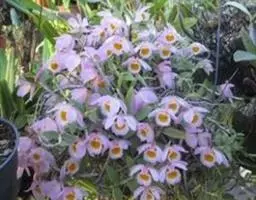 聚石斛是兰科石斛属植物。茎假鳞茎状,密集或丛生,多少两侧压扁状,纺锤形或卵状长圆形,长1-5厘米,…