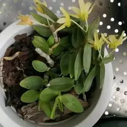 在春秋两季均可进行,一般每隔三年分株一次。凡植株生长健壮,假球茎密集的都可分株,分株后每丛至少要保存5个连结在一起的假球茎。分株前要减少灌水,使盆土较于。分株后上盆时,先以碎瓦片覆在盆底孔上,再铺上粗石子,占盆深度1/5至1/4,再放粗粒土及少量细土,然后用富含腐殖质的沙质壤土栽植。栽植深度以将假球茎刚刚埋入土中力度,盆边缘留2厘米沿口,上铺翠云草或细石子,最后浇透水,置阴处10-15天,保持土壤潮湿,逐渐减少浇水,进行正常养护。