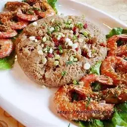①热锅下生油改用中火,待油八成热时放入剁好的姜、蒜粒、葱花粒(留部分葱花粒待用)爆香,一边爆一边炒它。 清蒸排骨