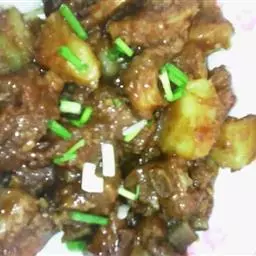 4.炒好后,把丁汁浇在蒸好的排骨上,就可以了!