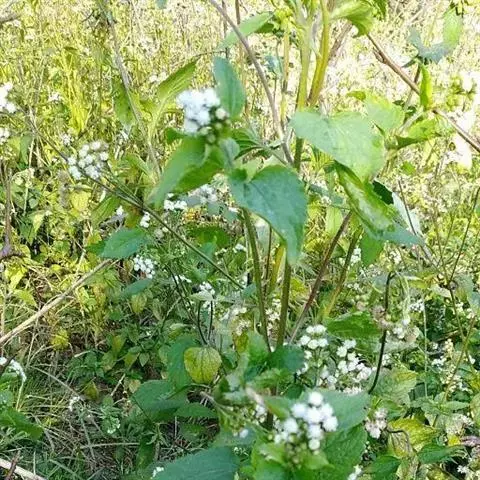 头状花序盘状,直径约7毫米,有长6-15毫米的细梗,生于枝端叶腋,排成有叶的总状花序;总苞半球形;总苞片3层,外中层等长,椭圆形,钝或急尖,叶质,内层较短小,矩圆形,几无毛,具宽膜质边缘。