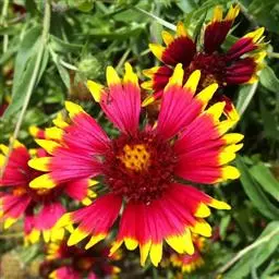 天人菊是菊科天人菊属一年生草本植物,株高20-60厘米;多分枝,全株被柔毛;叶互生,矩圆形,…