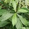 叶互生,最下部叶有时对生;叶片披针形、狭椭圆形或倒披针形,长4-12厘米、宽1.5-3厘米,先端尖或渐尖,基部楔形,边缘有锐锯齿,向基部常有数对无柄的黑色腺体,两面无毛或被疏柔毛,侧脉4-7对;叶柄长1-3厘米,上面有浅沟,两侧具数对具柄的腺体。