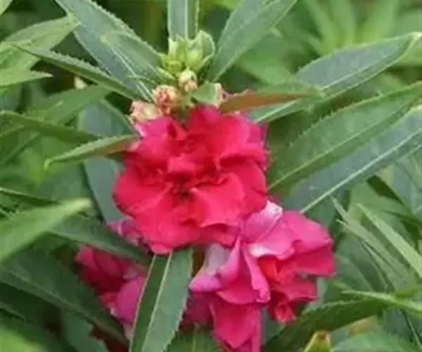 顶头凤仙花:别名拦头凤仙。为凤仙花的变种。花顶生主茎或分枝顶端。花大,重瓣。分枝扩张,形成丛株。