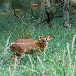 毛冠鹿是偶蹄目鹿科毛冠鹿属哺乳动物。耳外基部有长毛;上犬齿长大,稍向下弯,露出唇外;眼小;毛粗糙。…