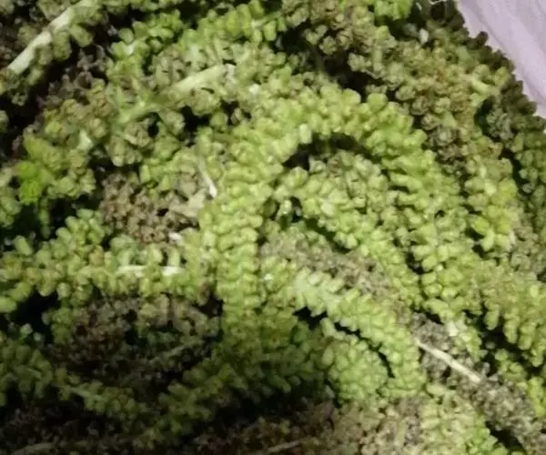 由于长茎葡萄蕨藻的直立枝外形类似葡萄,其藻体可分为匍匐茎、直立枝和丝状假根三部分,球形小枝布满整个直立枝主轴。整个藻体为一个多核细胞,虽然有多数细胞核存在但彼此之间没有细胞壁相隔。茎状部分是营养器官,可作为商品的是葡萄部分。