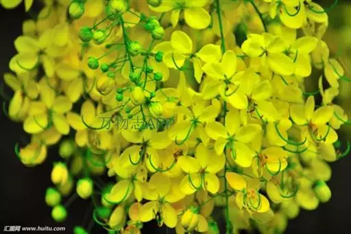 花期在5月,初夏满树金黄色花,花序随风摇曳、花瓣随风而如雨落,所以又名“黄金雨”。