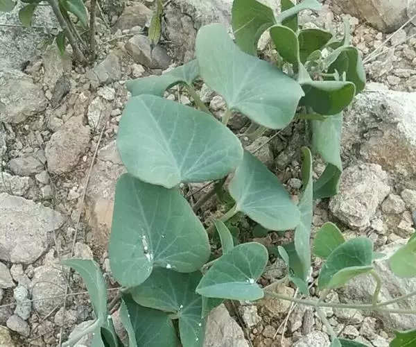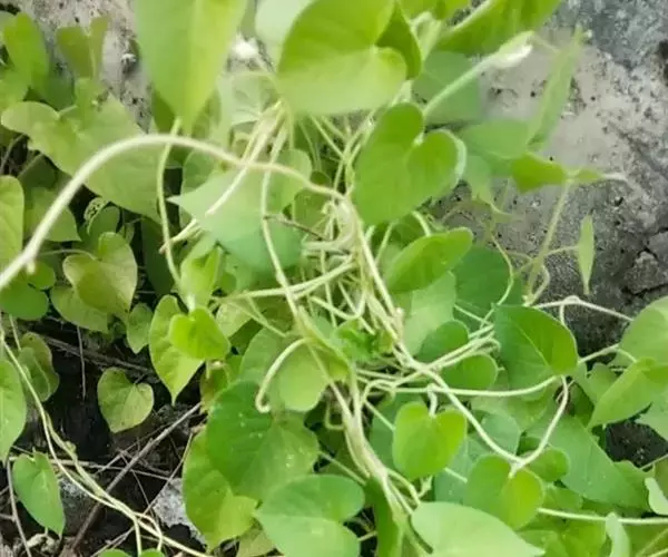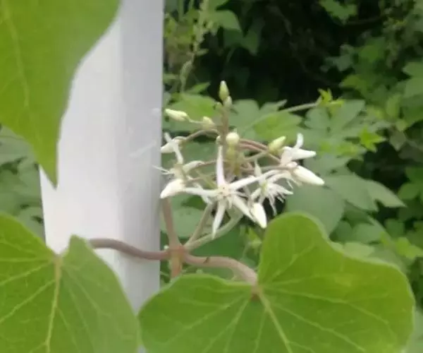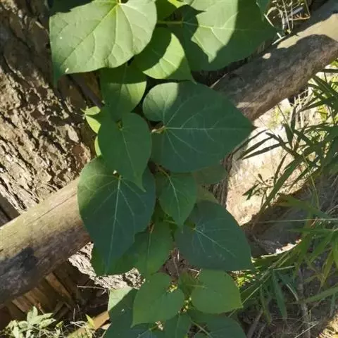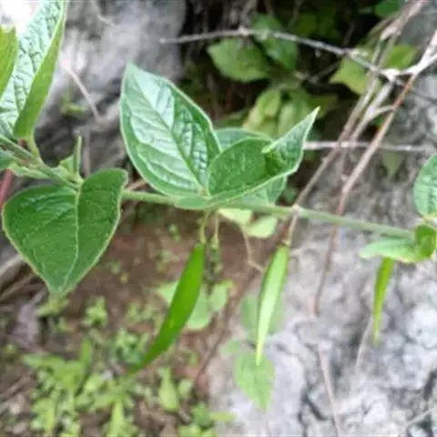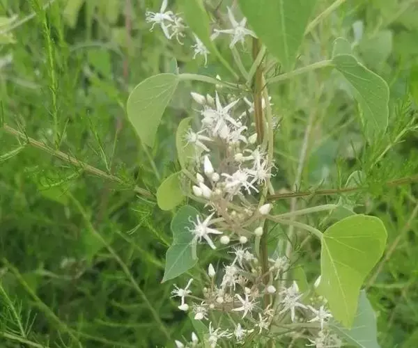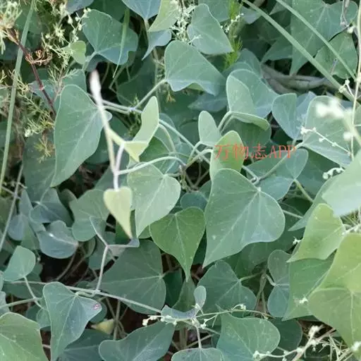 缠绕草本;主根圆柱状,长约20厘米,直径约5毫米,干后灰黄色;全株被短柔毛。叶对生,薄纸质,宽三角状心形,长4-9厘米,宽4-7厘米,顶端锐尖,基部心形,叶面深绿色,叶背苍白色,两面均被短柔毛,脉上较密;侧脉约10对,在叶背略为隆起。伞形聚伞花序腋生,两歧,着花约20朵;花萼外面被柔毛;花冠白色,裂片长圆状披针形;副花冠二形,杯状,上端裂成10个丝状体,分为两轮,外轮约与花冠裂片等长,内轮略短;花粉块每室1个,下垂;花柱头略为突起,顶端2裂。蓇葖双生或仅有1个发育,细圆柱状,向端部渐尖,长11厘米,直径5毫米;种子长圆形;种毛白色绢质。花期6-8月,果期8-10月。