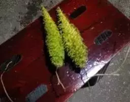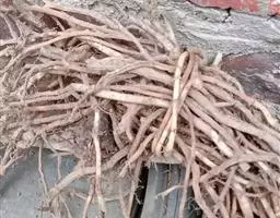 根呈圆柱形,长约20cm,直径5-8mm。表面灰黄色,平滑或有细皱纹,栓皮易剥离,剥离处显灰白色。质脆,易折断,断面不平坦,黄色,中空。气微,味淡。