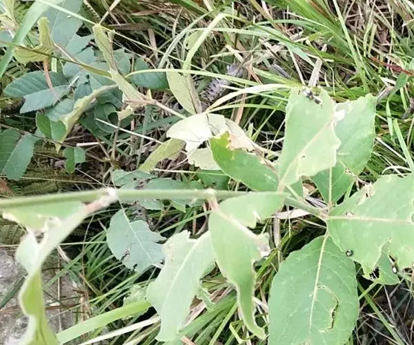 茎中的白色浆乳汁及根。
