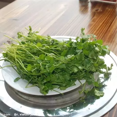 ③皱叶香芹和矮生皱叶 香芹:叶缘缺刻细、深裂而卷曲,并成三回卷皱,如重瓣鸡冠状。矮生皱叶香芹的基生叶成簇平展生长,叶片呈宽厚的羽毛状。外观雅致,用于作“青枝绿叶”装饰菜肴或沙拉。
