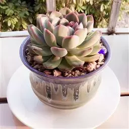 紫珍珠是景天科石莲花属的多年生肉质草本植物。植株中小型;叶片肉质,匙形,呈莲座状紧密排列;叶片粉紫色,…