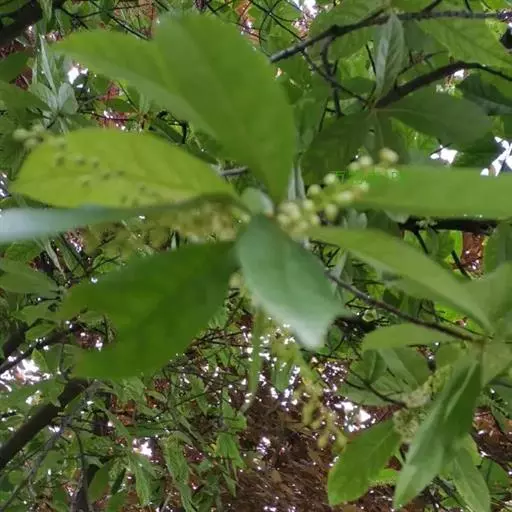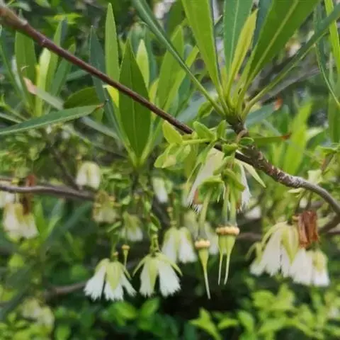 杜英科杜英属常绿乔木,高可达15米,叶革质,披针形或倒披针形,边缘有小钝齿;叶柄初时有微毛,在结实时变秃净。总状花序多生于叶腋,花序轴纤细,花白色,萼片披针形,花瓣倒卵形,花药顶端无附属物;核果椭圆形,外果皮无毛,内果皮坚骨质,花期6-7月。
