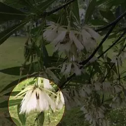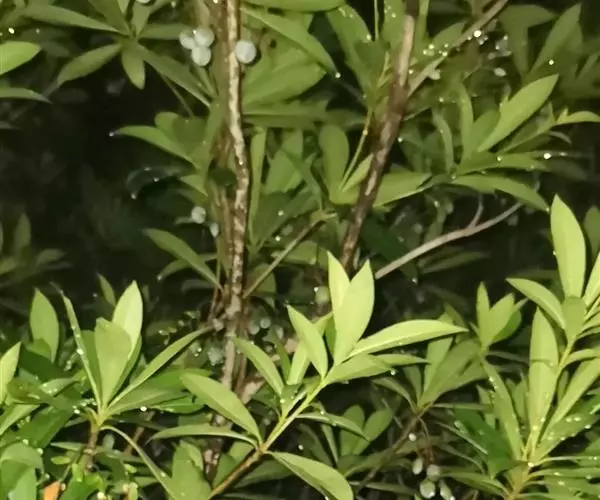 水石榕是杜英科杜英属小乔木。树冠宽广;幼枝无毛;叶革质,窄倒披针形或长圆形,先端尖,基部楔形,…