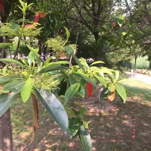 特征:由于杜英树皮较薄,易受日灼致病。日灼部位树皮受伤,木质部程度不同开裂、腐朽,刮大风时不少树木在此部位折断。 杜英开的花