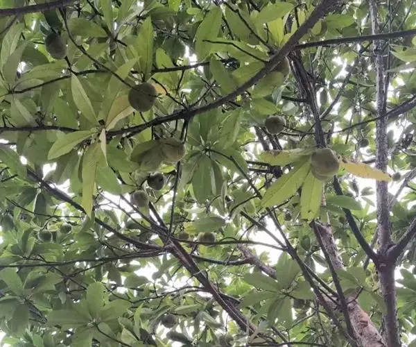 核果椭圆形,长2-2.5厘米,宽1.3-2厘米,外果皮无毛,内果皮坚骨质,表面有多数沟纹,1室,种子1颗,长1.5厘米。花期6-7月。 [2-3]