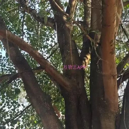 菩提树 大乔木,幼时附生于其他树上,高达15-25米,胸径30-50厘米;树皮灰色,平滑或微具纵纹,冠幅广展;小枝灰褐色,幼时被微柔毛。